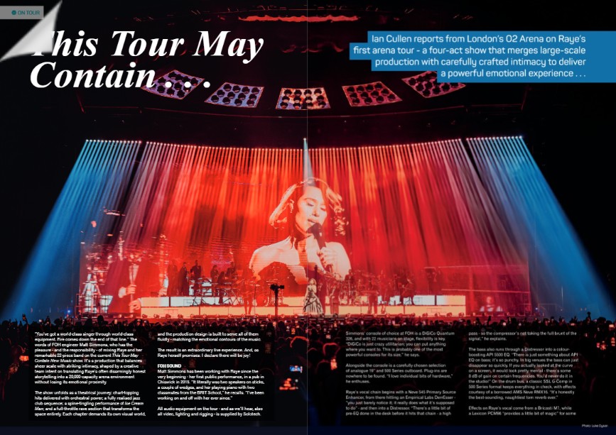 In this article, Ian Cullen and Matt Simmons report from London on Raye’s arena tour.